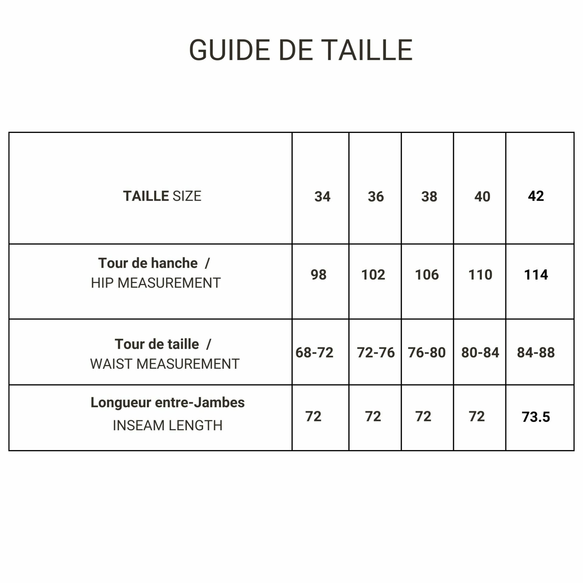 2- Assurez-vous que votre tour de hanches ne dépasse pas celle indiquée sur notre guide des tailles associé à votre taille.